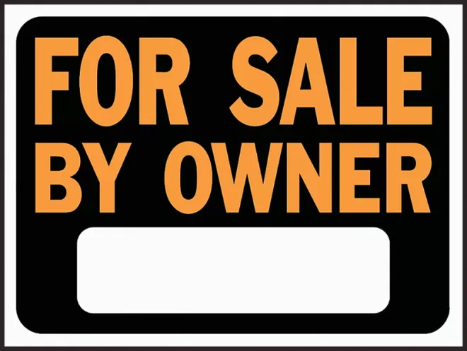 Brightly visible, fluorescent letters on a black background. Durable plastic, weatherproof. Sign states “FOR SALE BY OWNER”. 8-1/2″ X 12″