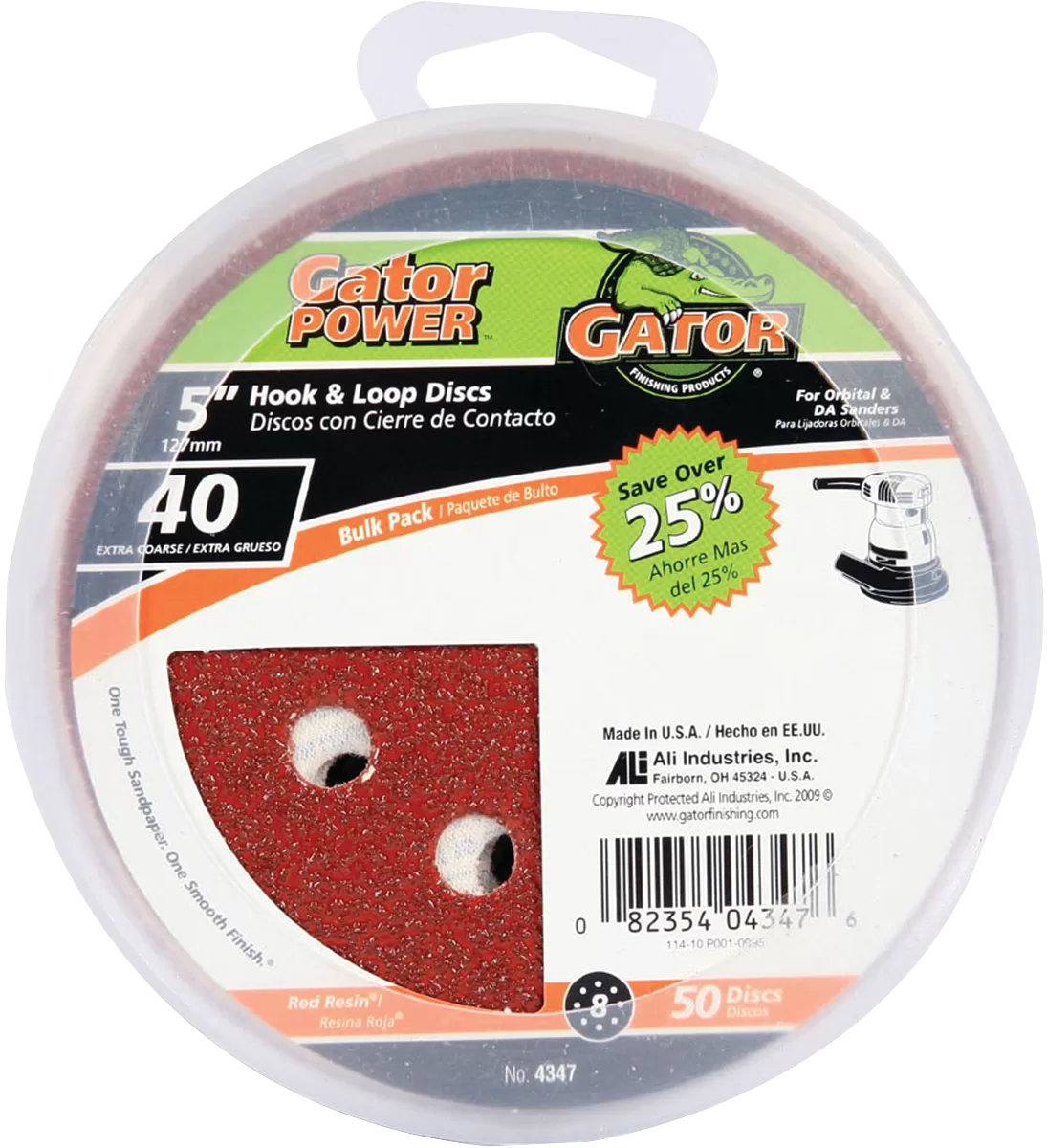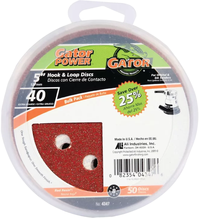 Diameter: 5″, Hole Design: Vented, Grit: Extra Coarse (40), Attachment Type: Hook and Loop, Abrasive Material: Aluminum Oxide, Suitable For: 8-Hole Skil Bosch BD DeWalt Makita and Milwaukee Random Orbit Sanders, Applicable Material: Drywall, Fiberglass, M