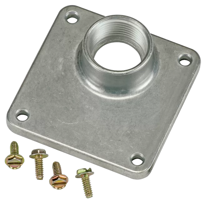 Nominal Size: 2″, Number of Mounting Holes: 4, Dimensions: 5-1/4″ W X 1-1/4″ D X 5-3/4″ H, Material: Aluminium, Includes: Removable Closure Caps & Screws
