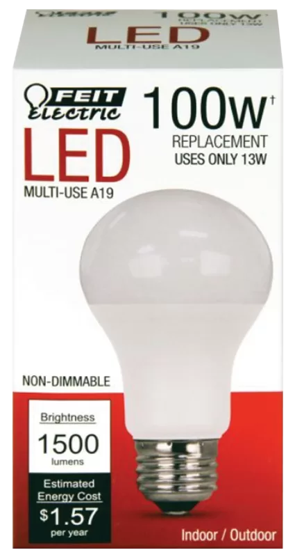 100W eq / 15W act, 120V, 1500 Lumens, Color: 2700K (Soft White), Lamp Base: E26, Lamp shape: A19, Lamp Finish: White, Lamp Material: Plastic, Average Life: 11000 hr