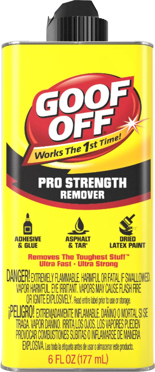 Goof Off Pro-Strength remover works the first time quickly and easily removing tough spots and stains, like chewing gum, that ordinary household cleaners can’t.