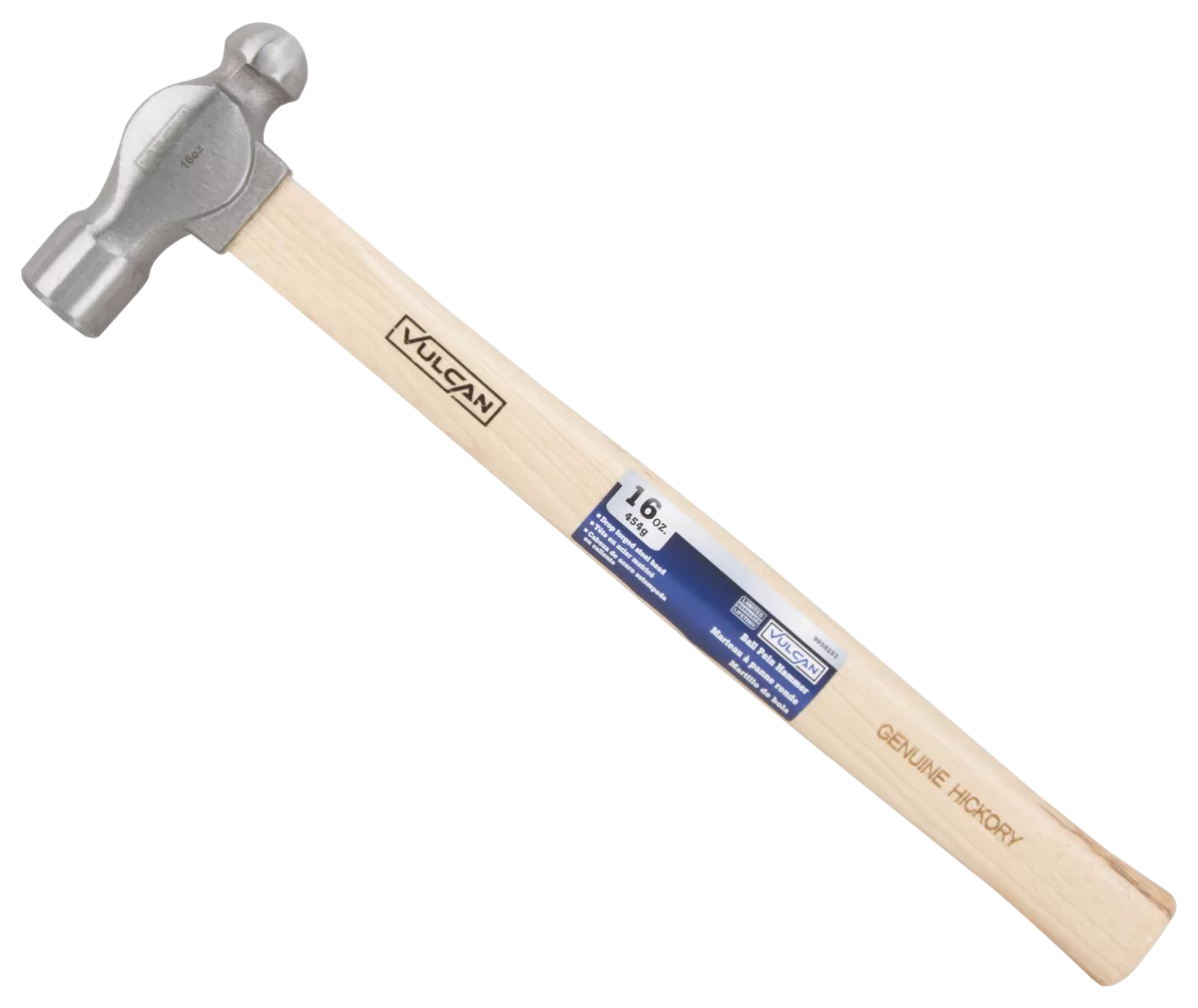 Vulcan Hammer, Head Type: Ball Pein, Head Material: CS, Head Finish: Polished, Head Color: Steel, Head Length: 4 in, Head Width: 1-1/8 in, Head Weight: 16 oz, Face Diameter: 1-1/8 in, Wood Handle Handle, Wood Handle, Handle Color: Nature, 12-1/2 in L