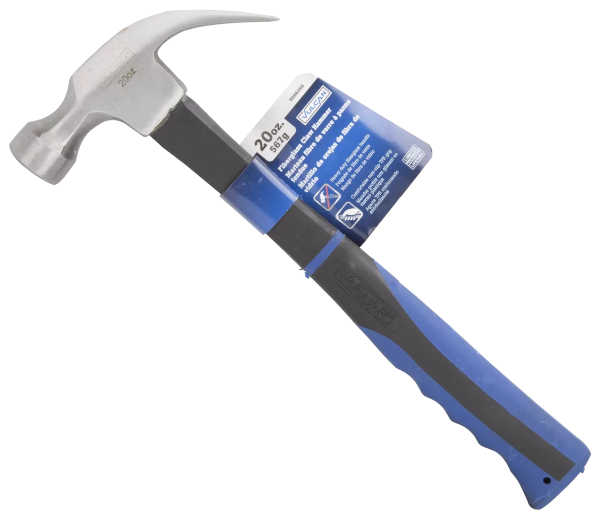 Curved Claw hammer with 20 oz steel head and fiberglass handle, 6-3/4 in L.