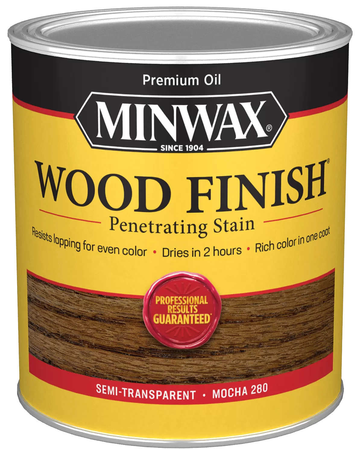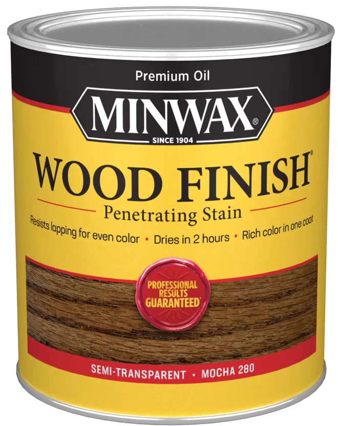 Minwax Wood Stain, Mocha, Liquid, 1 qt. Minwax? wood Finish? is a penetrating oil-based wood stain, which provides beautiful rich color that enhances the natural woodgrain. Drys in 2 hours.