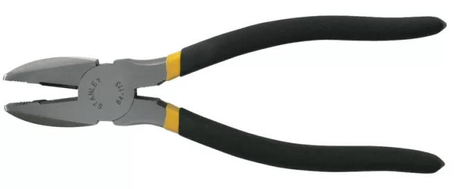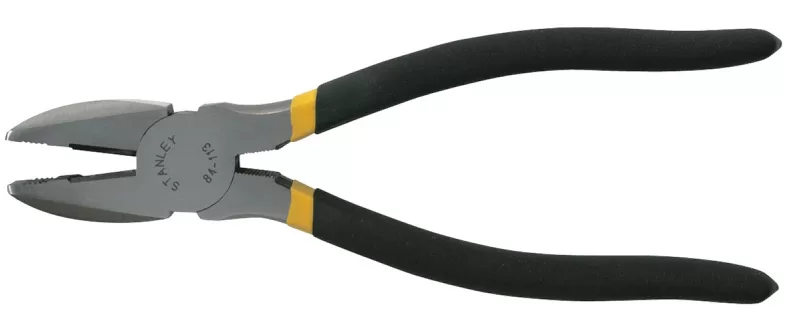 The Linesman plier is quite durable with its hardened cutting edges and rust-resistant finish. It features a serrated jaw for grip and additional leverage and double-dipped handle for comfort. It meets or exceeds ANSI standards.