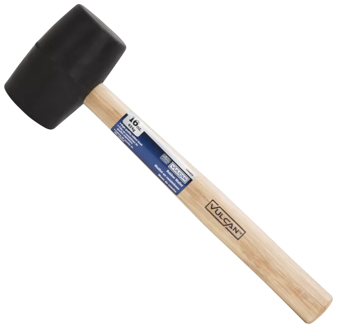 Mallet hammer with double-faced, rubber head, 16 oz, black color. Hardwood handle, 10-5/8 in L.