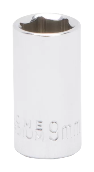 Socket Size: 9mm, Drive Size: 1/4″, Outside Drive Diameter: 1/2″, Nut End Outside Diameter: 1/2″, Number of Points: 6, Length: 1″, Material: Chrome Vanadium Steel