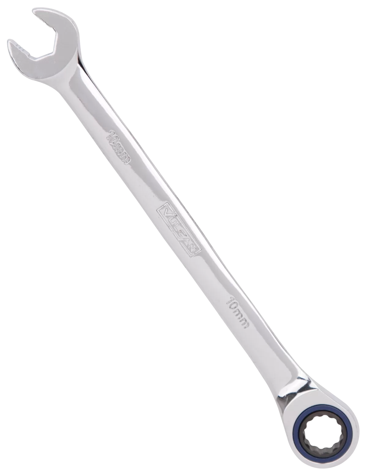 72 tooth ratcheting box-end with 5 deg of arc for use in tight space conditions. Drop-forged chrome vanadium steel. Mirror polish.