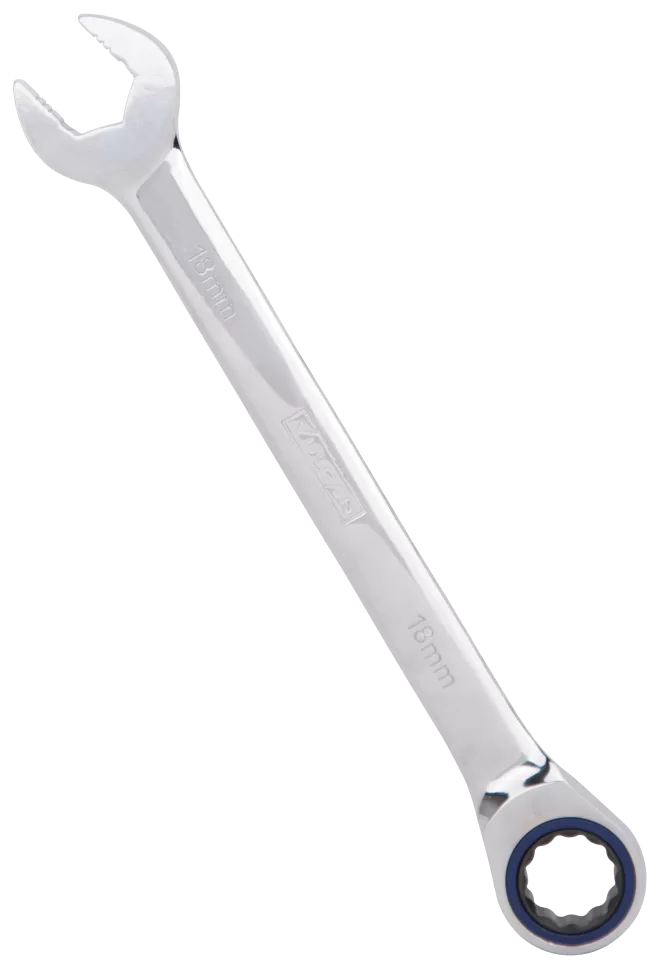 72 tooth ratcheting box-end with 5 deg of arc for use in tight space conditions. Drop-forged chrome vanadium steel. Mirror polish.
