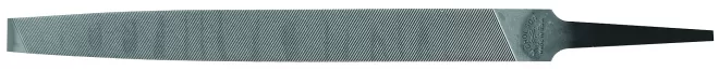 Rectangular shape, single cut on sides and edges, two square edges, all sizes taper slightly in width. Used for sharpening mill or circular saws or draw-filing and finishing metals.