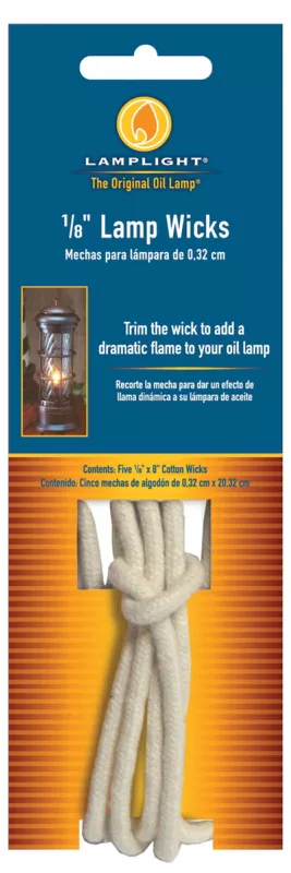 Lamplight Round Wick, Replacement, Specifications: 0.09 lb Weight, Cotton, Dimensions: 1/8 in Dia x 8 in L, Suitable for: Most Lamplight Oil Lamp With Ultra-Pure or Medallion Lamp Oil