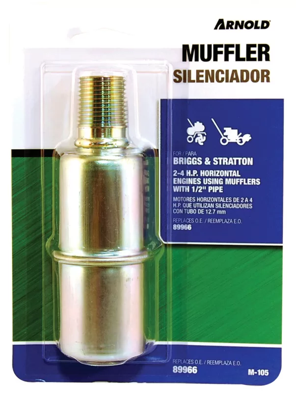 Arnold M-105 Small Engine Muffler, 1/2 in Inlet, For: 2 to 4 hp Briggs & Stratton, Tecumseh and Clinton Engines
