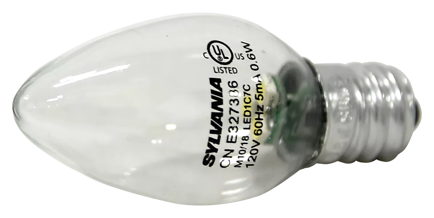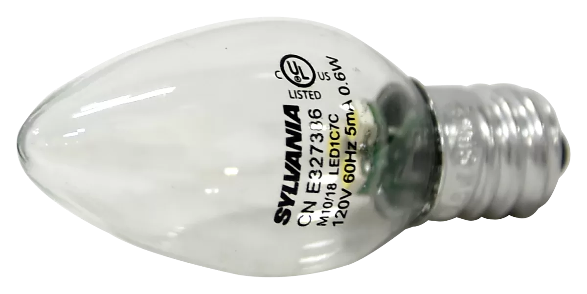 11W eq / 0.6W act, 120V, 4 Lumens, Color: 6500K, Lamp Base: E12, Lamp shape: C7, Lamp Finish: Clear, Average Life: 15000 hr