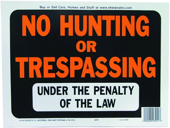 NO HUNTING TRESPASSING HYGLO