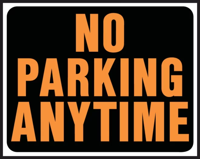 Top visibility, heavy-gauge, durable, weatherproof. Fluorescent letters on black background. Ideal for homeowners, apartments, industrial, shopping centers and offices. Sign states “NO PARKING ANYTIME”. 14-1/2″ X 18-1/2″