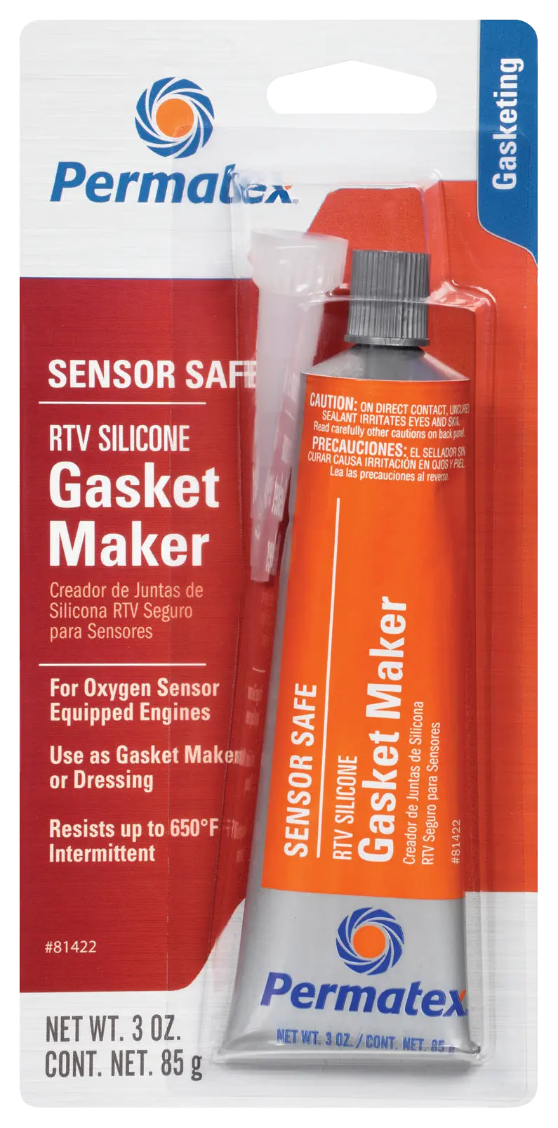 The high temp first generation gasket maker formulated for oxygen sensor equipped engines. Temperature range of -65 to 650 deg F intermittent. Resists auto and shop fluids.