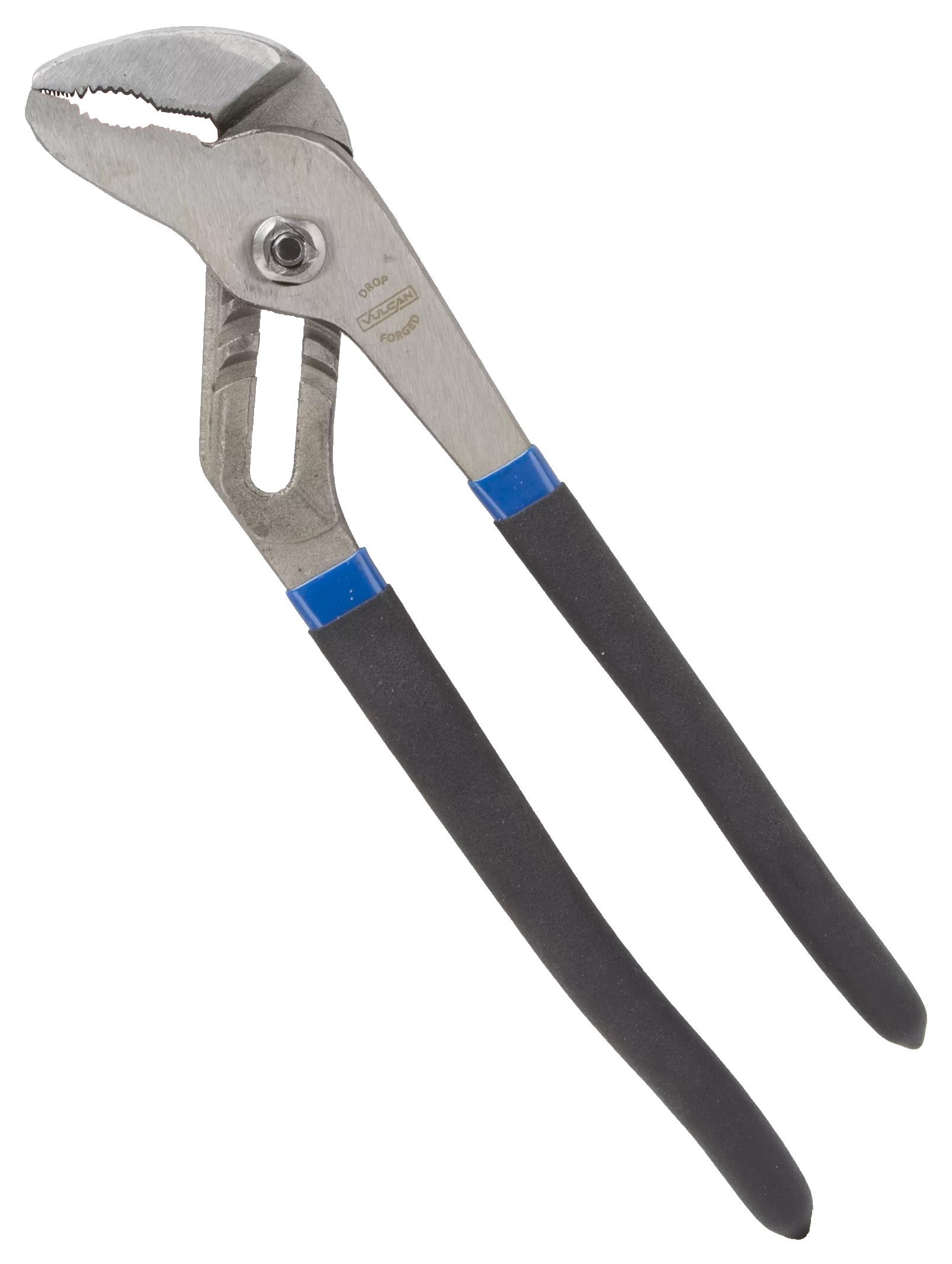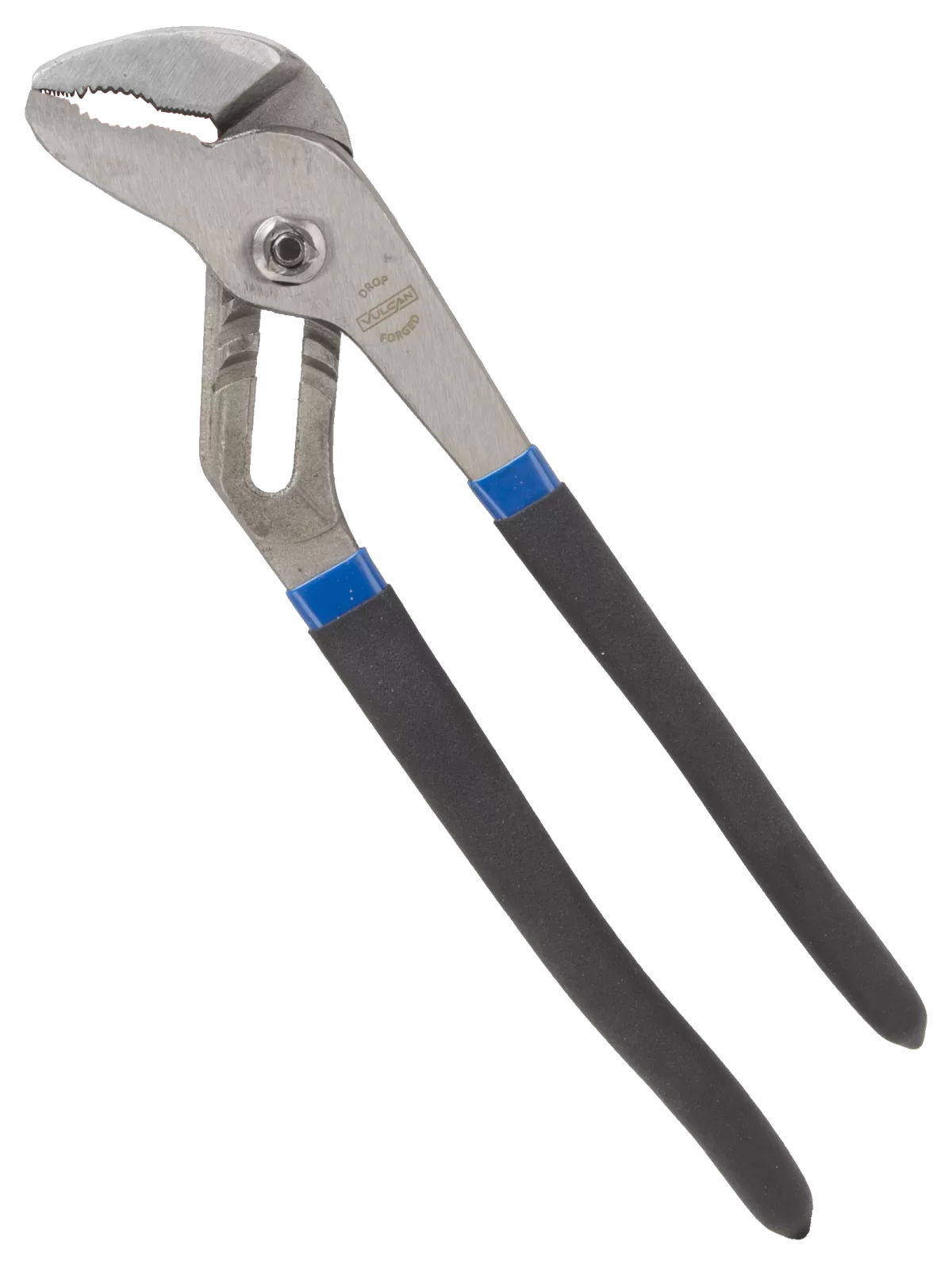 Groove joint pliers are made from steel and feature curved jaw and non-slip, vinyl handles, 10 in OAL. Chrome-plated finish.