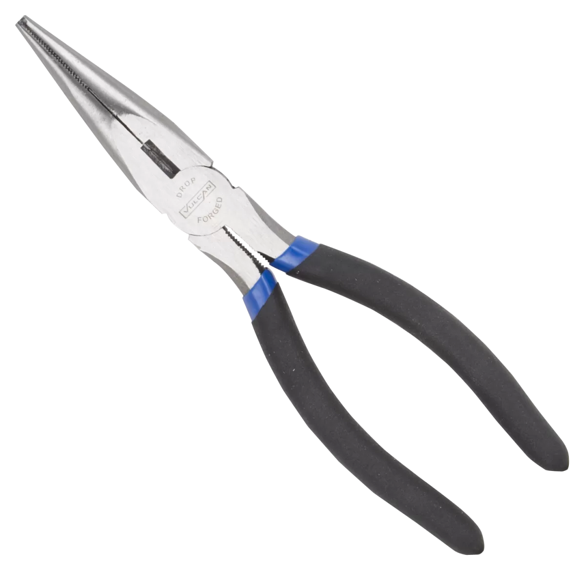 Drop-forged hardened high-carbon steel; fully polished finish resists rust and corrosion; precision milled tapered jaws; hardened and tempered wire cutter; non-slip vinyl comfort grips; hardness meets or exceeds ANSI standards.