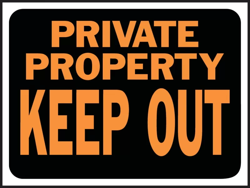 Brightly visible, fluorescent letters on a black background. Durable plastic, weatherproof. Sign states “PRIVATE PROPERTY KEEP OUT”. 8-1/2″ X 12″