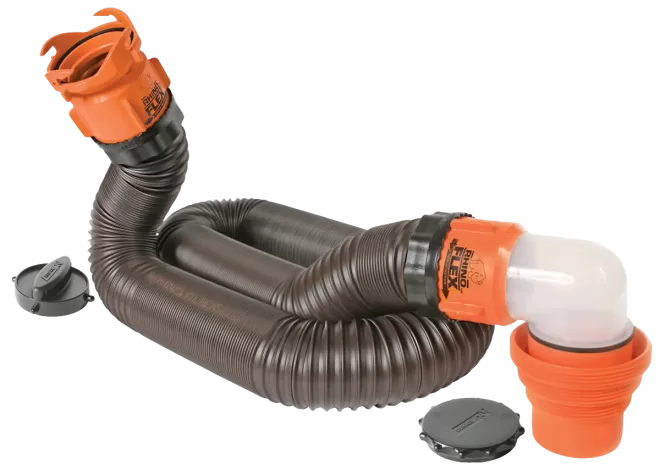 All of the features that RVers are looking for in a complete kit. RhinoEXTREME hose will not dent or rust and will not crush if accidentally stepped on. Offers great abrasion resistance for maximum protection against pinholes and leaks.