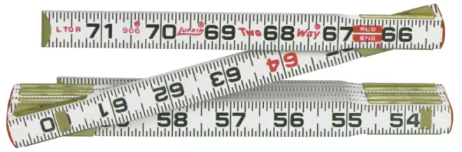 For measuring left to right, right to left. Marked both sides. Graduated in feet, inches and 1/16ths on both sides and both edges. Flat inside markings lie close to the work.