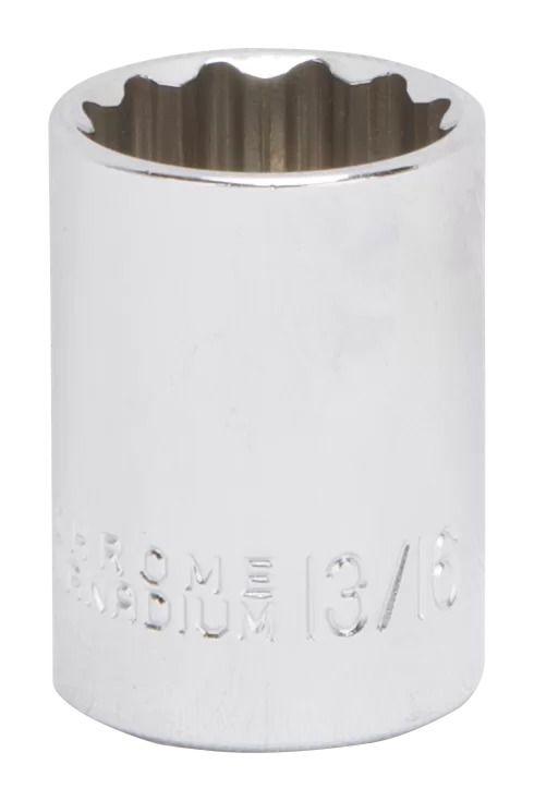 Socket Size: 13/16″, Drive Size: 1/2″, Outside Drive End Diameter: 1-1/8″, Nut End Outside Diameter: 1-1/8″, Number of Points: 12, Length: 1-9/16″, Material: Chrome Vanadium Steel