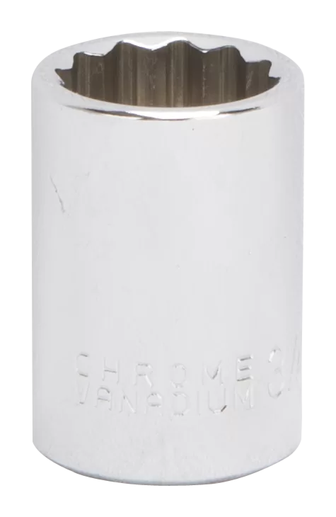 Socket Size: 3/4″, Drive Size: 1/2″, Outside Drive End Diameter: 1-1/16″, Nut End Outside Diameter: 1-1/16″, Number of Points: 12, Length: 1-9/16″, Material: Chrome Vanadium Steel