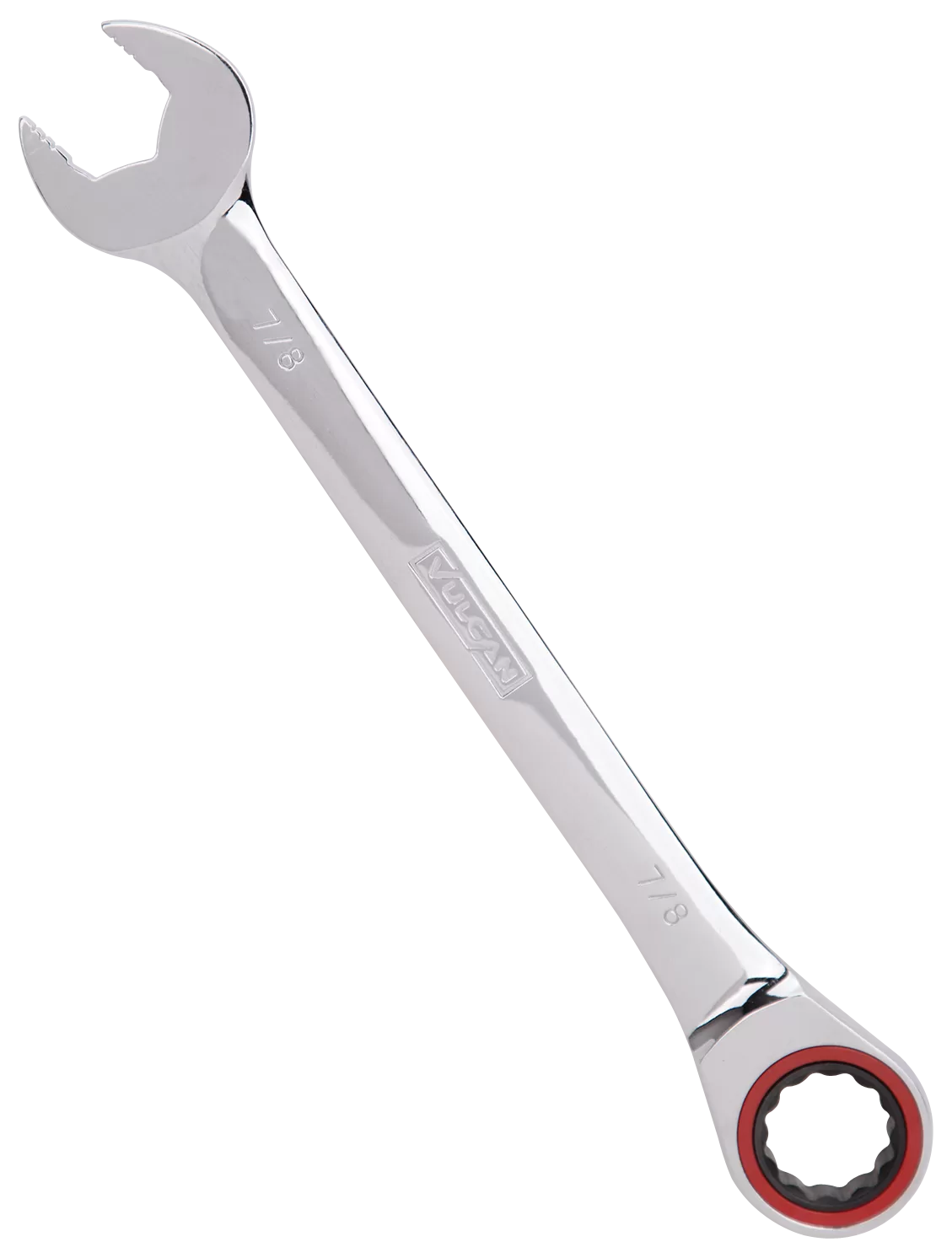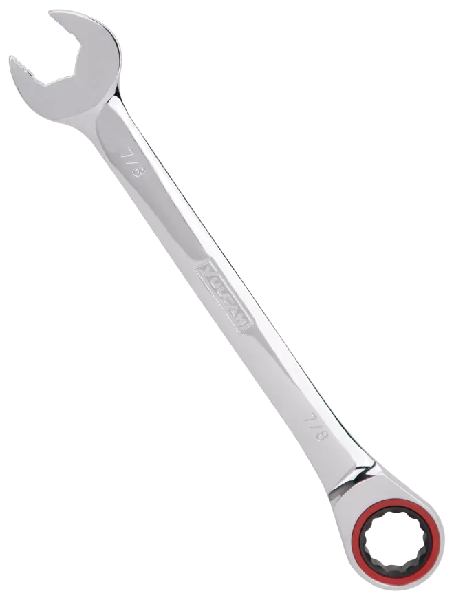 72 tooth ratcheting box-end with 5 deg of arc for use in tight space conditions. Drop-forged chrome vanadium steel. Mirror polish.