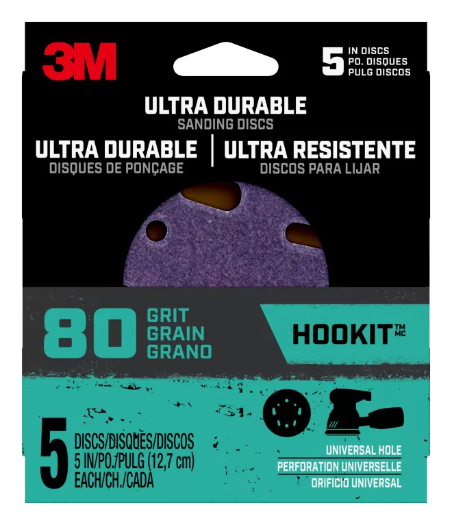 Diameter: 5″, Hole Design: 5 and 8 Hole, Grit: Coarse (80), Attachment Type: Hookit, Abrasive Material: Ceramic, Applicable Material: Plastic, Metal, and Wood