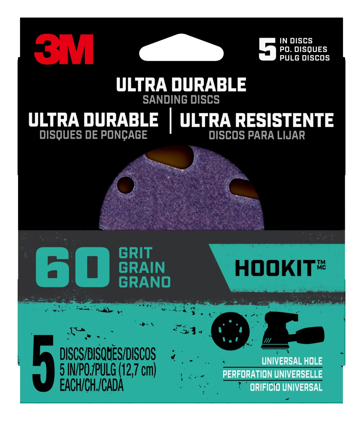 Diameter: 5″, Hole Design: 5 and 8 Hole, Grit: Coarse (60), Attachment Type: Hookit, Abrasive Material: Ceramic, Applicable Material: Plastic, Metal, and Wood