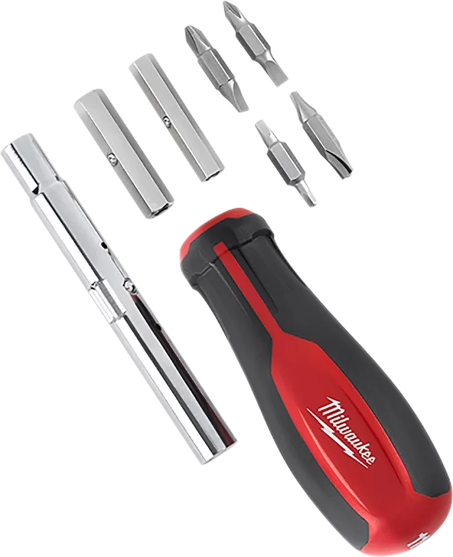 The 11 in 1 screwdriver includes the 8 bits and 3 nut drivers most requested by professionals. The bit prevents bit wear from hardened screws and extends bit life when fastening specialty screws found in electrical boxes, conduit couplers and outlets