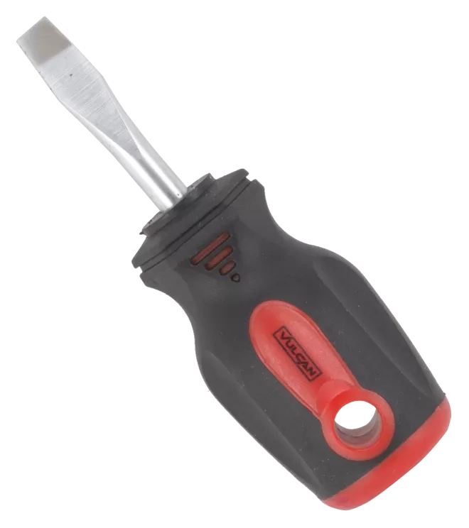Drive Type: Slotted, Shank Type: Round, Drive Size: 1/4″, Shank Length: 1-1/2″, Overall Length: 3-3/4″, Handle Type: Platic, Shank Material: Chrome Vanadium Steel