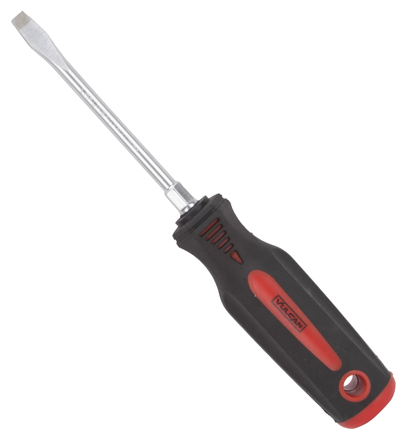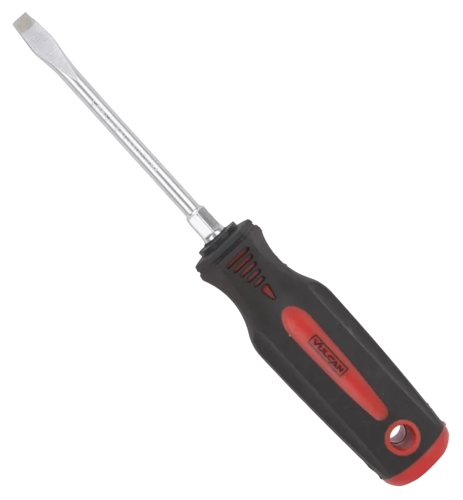 Drive Type: Slotted, Shank Type: Round, Drive Size: 1/4″, Shank Length: 4″, Overall Length: 8-1/4″, Handle Type: Plastic, Shank Material: Chrome Vanadium Steel