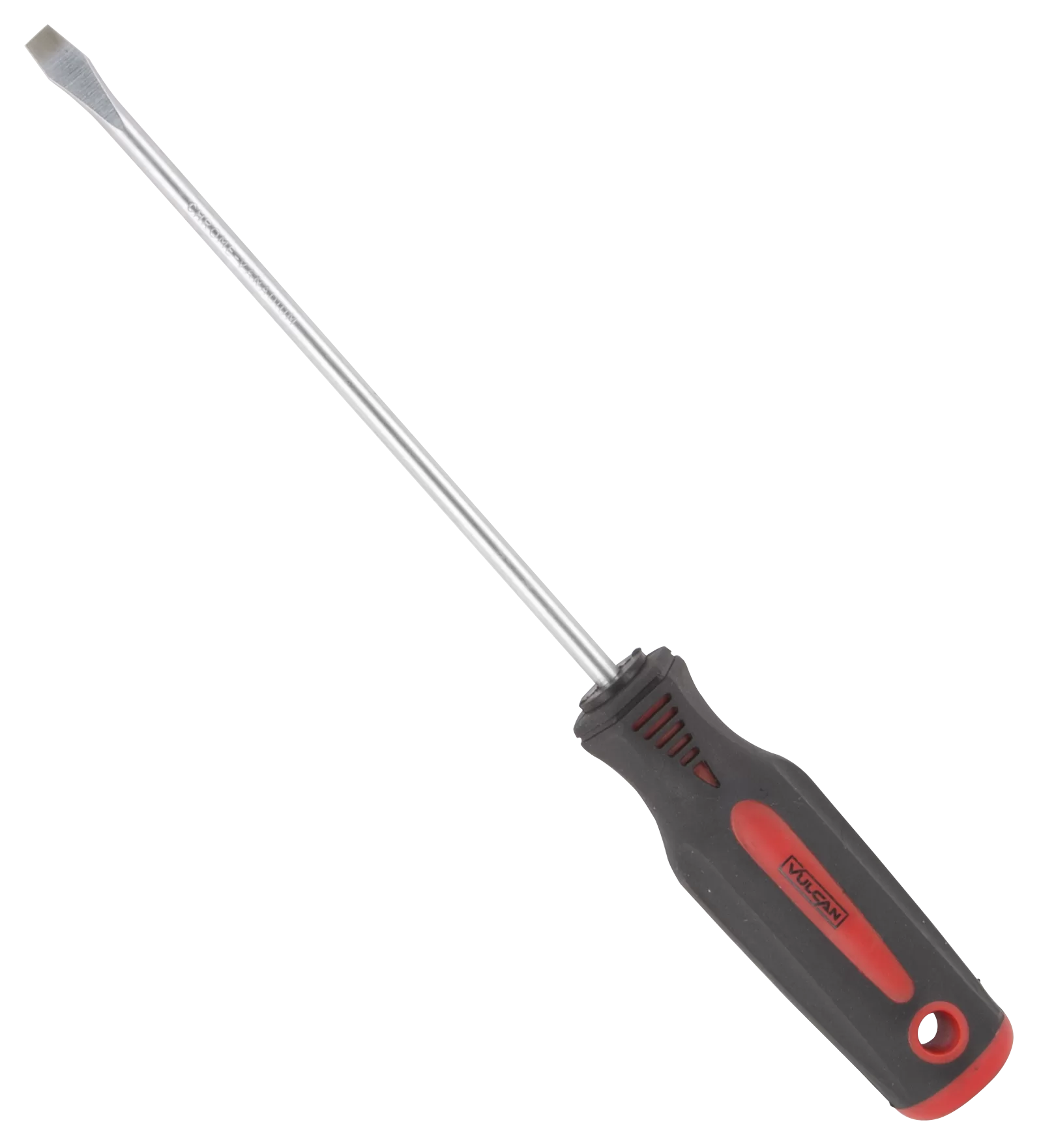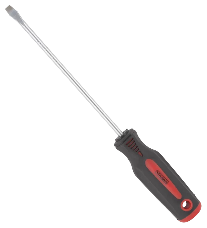 Drive Type: Slotted, Shank Type: Round, Drive Size: 3/16″, Shank Length: 6″, Overall Length: 9-3/4″, Handle Type: Plastic, Shank Material: Chrome Vanadium Steel