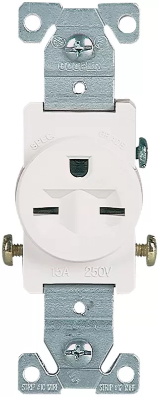 Meets all UL 498 requirements. Triple wire line contacts provide excellent long-term plug retention. Arc-resistant thermostat face. Side wire terminals accept up to #10 solid or stranded wire. Terminal screws backed out. 15 A, 250 V.