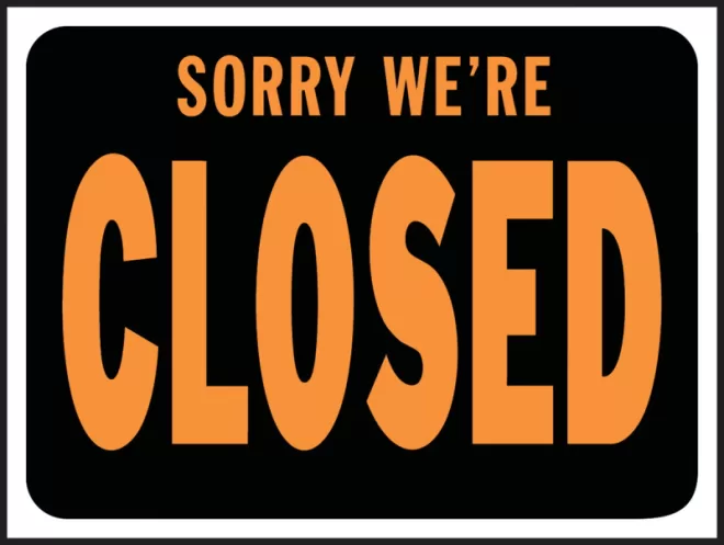 Brightly visible, fluorescent letters on a black background. Durable plastic, weatherproof. Sign states “SORRY WE’RE CLOSED”. 8-1/2″ X 12″