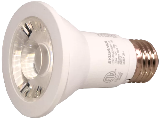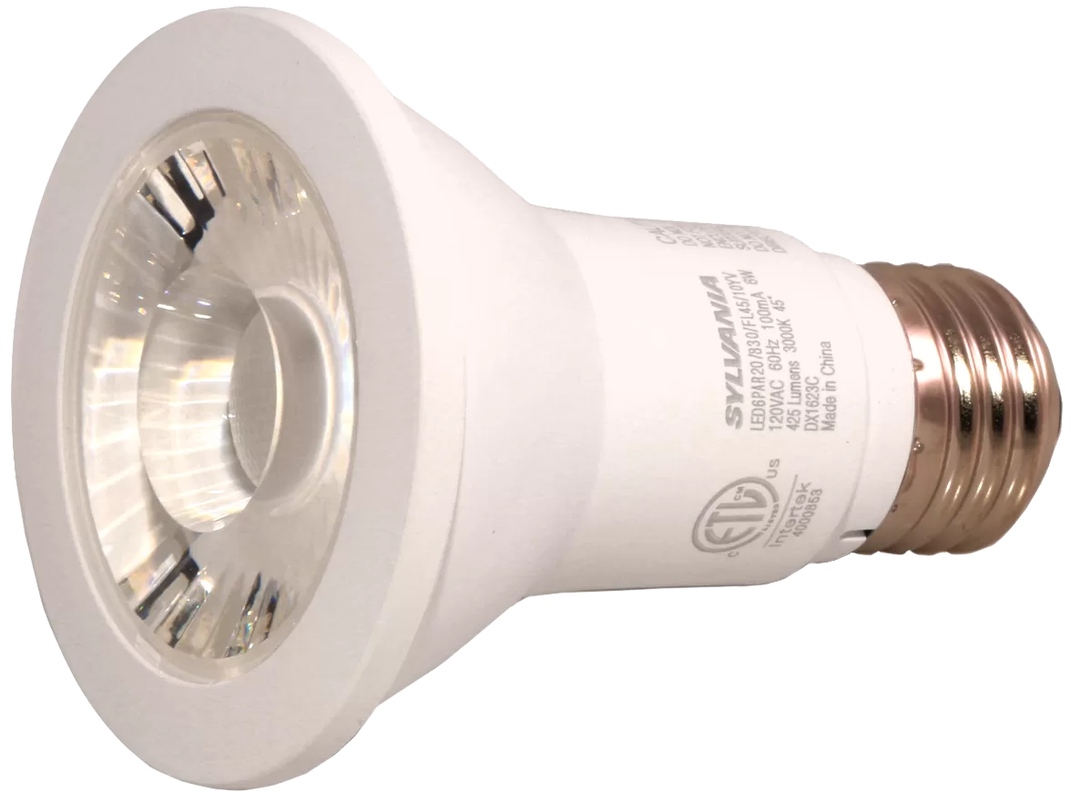 50W eq / 6W act, 120V, 425 Lumens, Color: 3000K (Warm White), Beam Angle: 45 deg, Lamp Base: E26, Lamp shape: PAR30, Lamp Finish: White, Type: Flood/Spotlight, Operating Temp: -20 to 40 deg C, Average Life: 11000 hr
