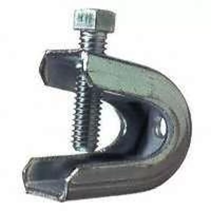 Use to secure conduit to a metal beam. Clamps on beam, girder or similar structure to provide a mounting base for attachment of a conduit hanger, either directly or by means of a threaded rod. Eliminates need to drill hole through beam.
