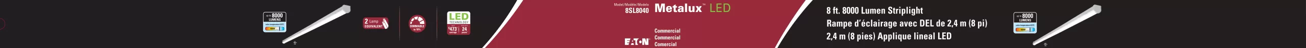 Wattage Rating: 71W, Voltage Range: 277V, Lamp Type: LED, Lumens: 8176, Color: 4000K, Mounting Type: Flush, Current Rating: 0.62A/0.27A, Length: 96″, Average Life: 50000 hr,