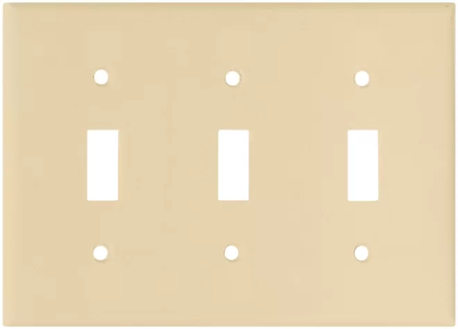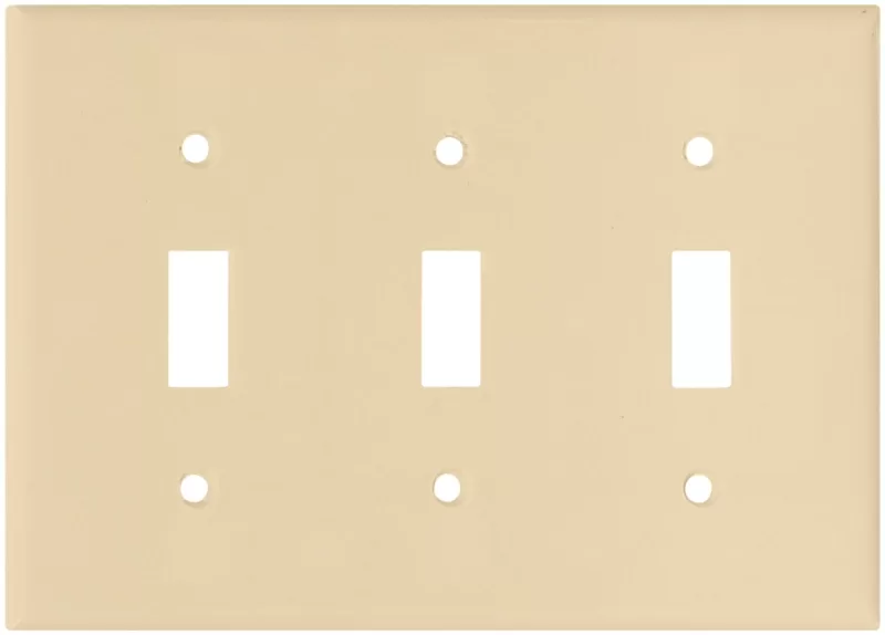 Number of Gangs: 3, Length: 4-1/2″, Width: 6.37″, Thickness: 5/64″, Mounting Type: Flush, Operating Temprature: -40 to 90 deg C, Material: Thermoset