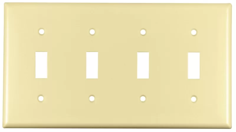 Number of Gangs: 4, Length: 4-1/2″, Width: 8.19″, Thickness: 5/64″, Mounting Type: Flush, Operating Temprature: -40 to 90 deg C, Material: Thermoset