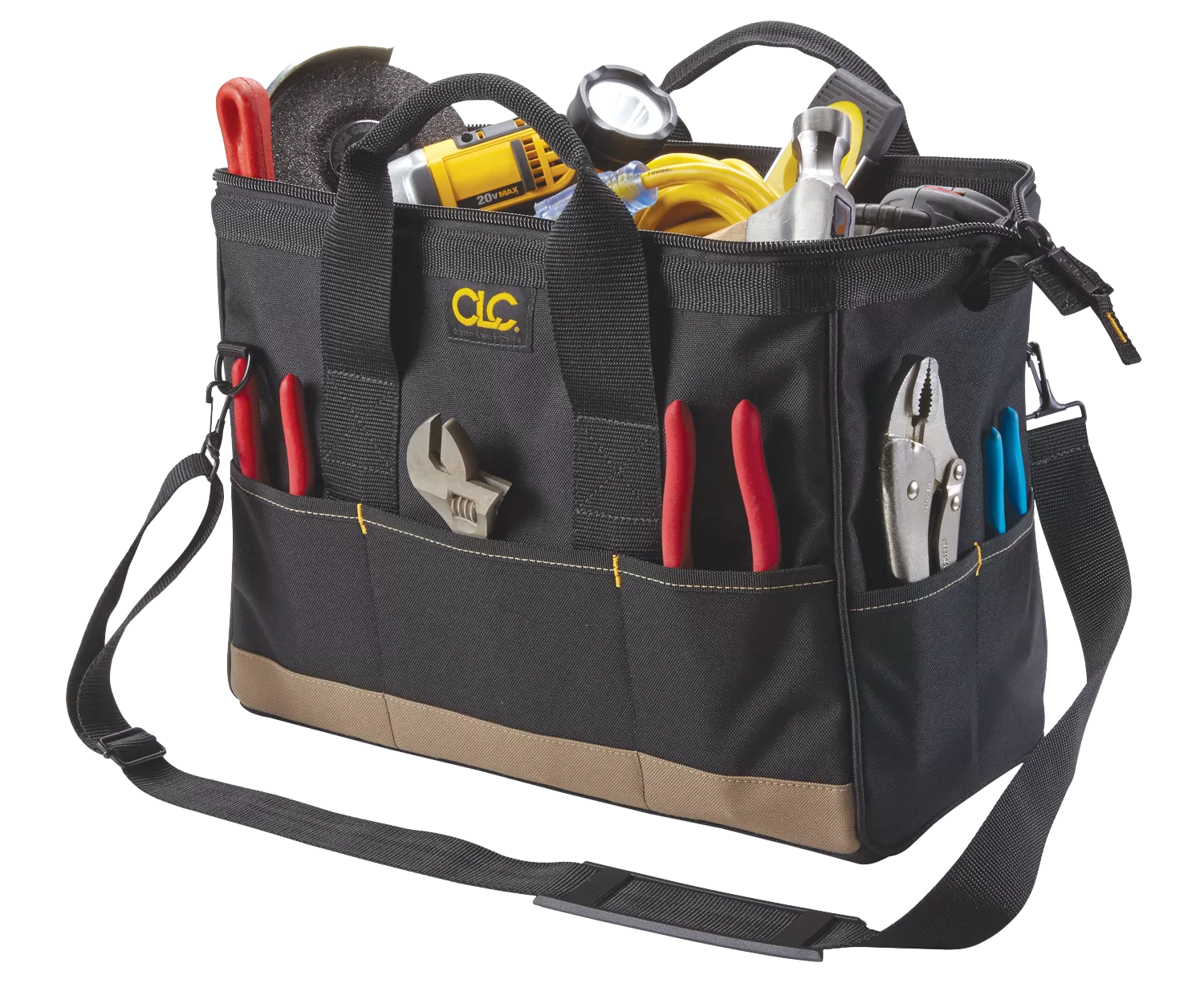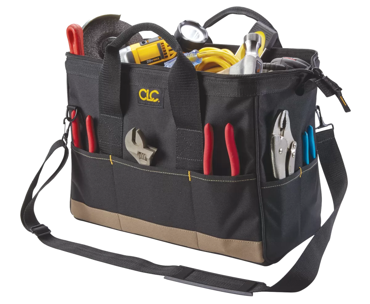 Our traditional BIGMOUTH tote bag has 22 pockets and opens wide for easy access to tools and parts, with padded handles and an adjustable shoulder strap for easy carrying.