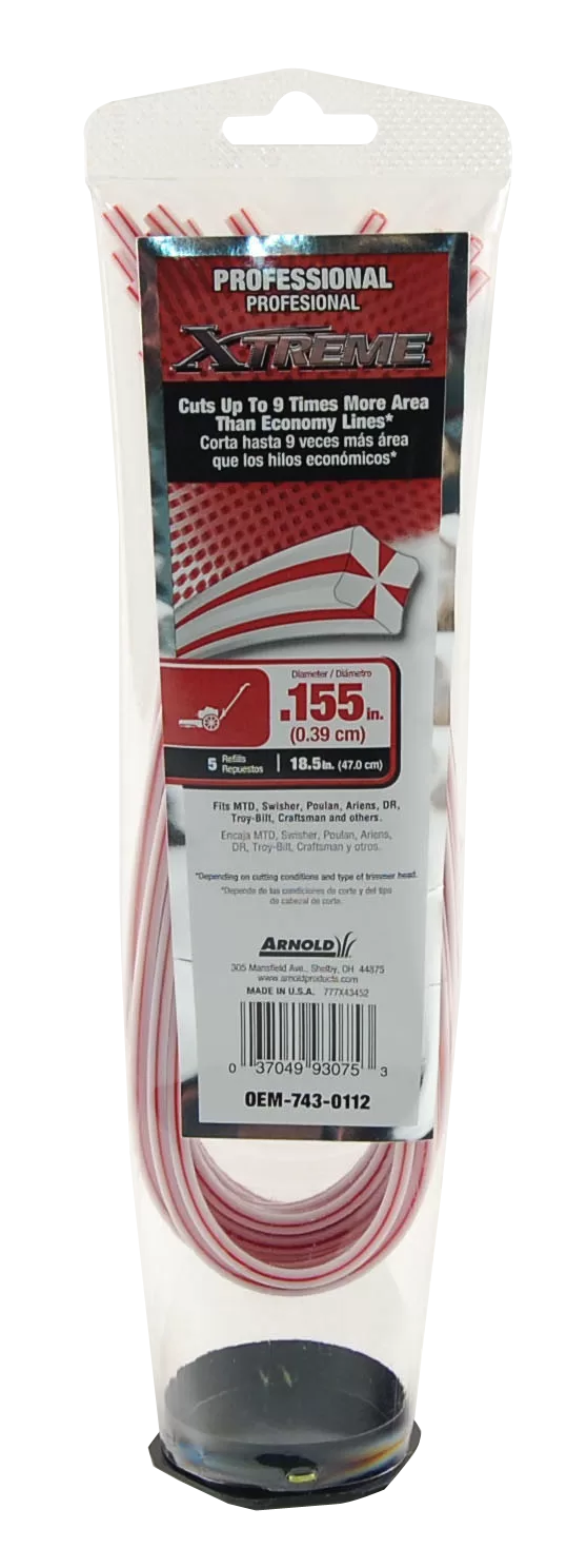 rimmer Line, 0.155 in Dia, Yellow. Fits Yard-Man 250 Series walk behind string trimmer mowers, 201 and after. Contains 5 pieces of commercial-grade line, each 18-1/2 in long.