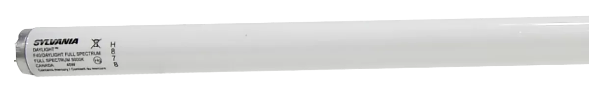 40W, 120v, 2200 Lumens, Color: 5000K (Daylight), Lamp Base: Medium, Lamp Shape: T12, Lamp Material: Phosphor, Length: 48″, Average Life: 20000 hr