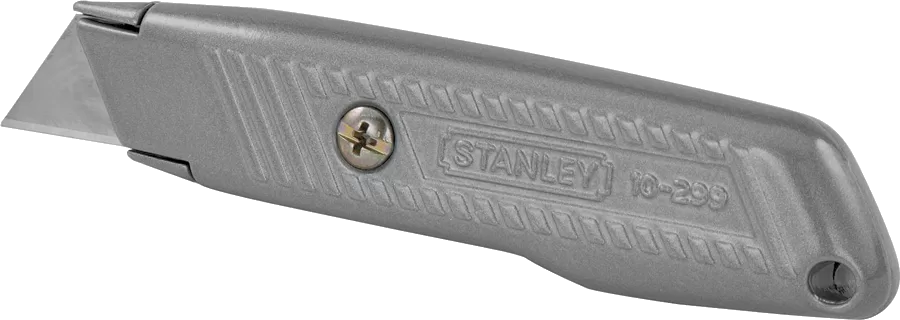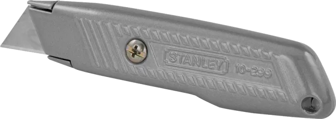 Stanley 299 fixed blade interlock utility knife features an interlocking nose to help ensure safety. The contoured handle is designed to provide a slip-resistant grip for the user and has incorporated blade storage.