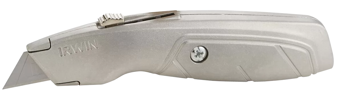 Standard grip, optimized cutting angle, slide assembly with three positions, magnetic nose, captured screw and inside storage for up to five blades. Includes: (1) one Irwin blue blade. (052.6277 or 265.0323).