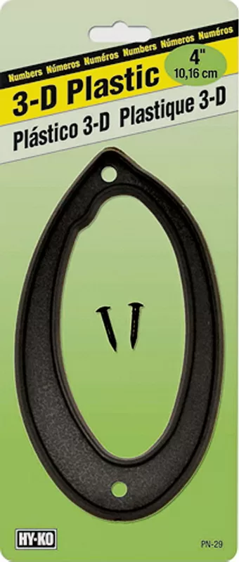 Raised script numbers. Durable, weatherproof plastic. Mounting nails included.