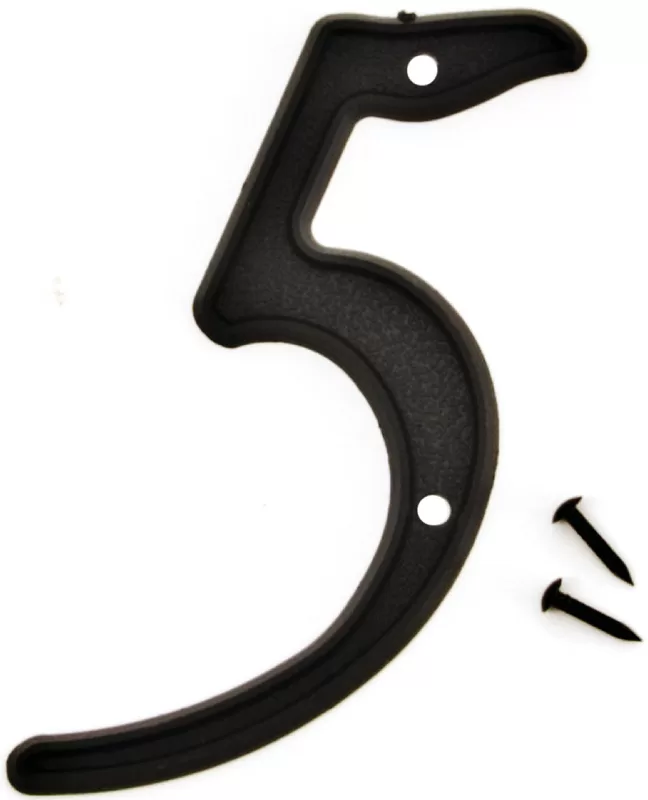 Raised script numbers. Durable, weatherproof plastic. Mounting nails included.