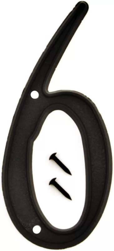 Raised script numbers. Durable, weatherproof plastic. Mounting nails included.
