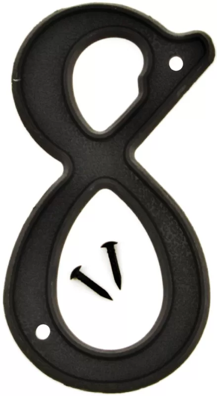 Raised script numbers. Durable, weatherproof plastic. Mounting nails included.